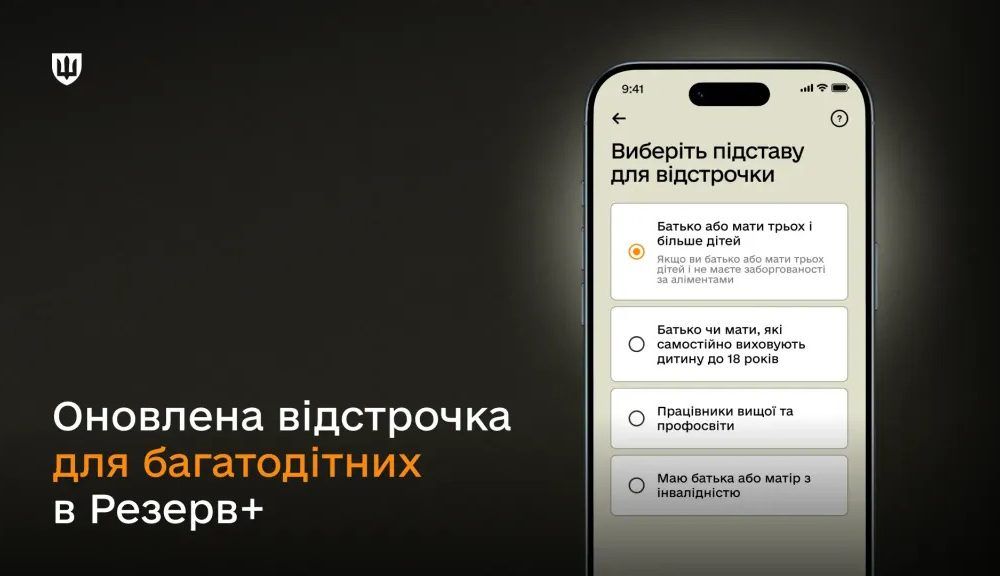 Міністерство оборони України розширило перелік відстрочок від мобілізації, які можна оформити у застосунку Резерв+, – відтепер подати запит онлайн можуть військовозобов’язані, які: – мають трьох або...