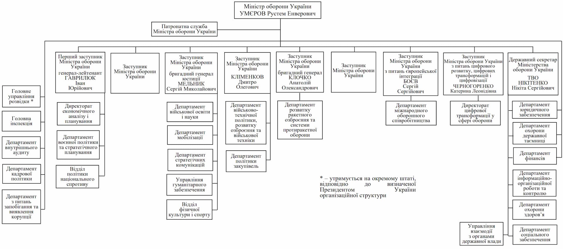 | Міністр оборони України | Р. Умєров |