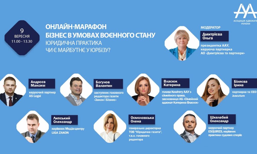Асоціація адвокатів України запрошує взяти участь в онлайн-марафоні: «Юридична практика. Чи є майбутнє у юрбізу?» Війна з рф змінила життя усієї країни, але, незважаючи на активні бойові...