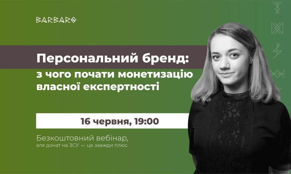 16 червня о 19:00 засновниця та СЕО агентства Barbaro Communications Богдана Остапик проведе безкоштовний вебінар на тему: “Персональний бренд: з чого почати монетизацію власної експертності” для власників бізнесу та...