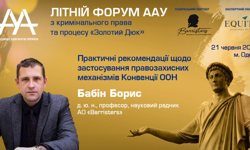 Ще не використовуєте правозахисні механізми Конвенції ООН в своїй практиці? Тоді Сесія 3 Форуму ААУ з кримінального права та процесу «Золотий Дюк» — Ваш шанс дізнатися...