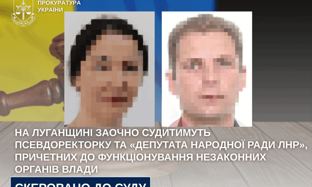 Прокурори Луганської обласної прокуратури скерували до суду обвинувальні акти стосовно двох громадян, причетних до функціонування незаконних органів влади на тимчасово окупованій території регіону. Серед обвинувачених луганчанка,...