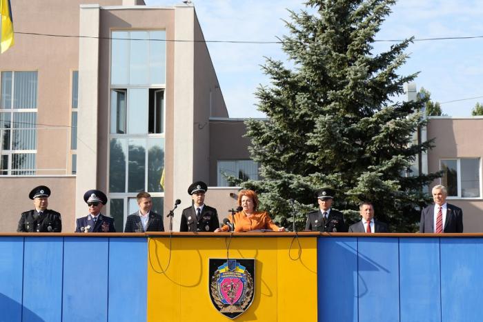 Після урочистого внесення Прапора університету присутні хвилиною мовчання вшанували патріотизм, мужність, вірність та героїзм тих, хто поклав своє життя за єдність та незалежність України. Далі до присутніх звернулась голова Наглядової ради університету Ірина Єфремова, яка передала привітання від міністра внутрішніх справ України Арсена Авакова: «Майбутні поліцейські, саме вам оберігати спокій громадян, стояти на сторожі закону, правди і справедливості. Ваші здібності, наполегливість та фаховість стануть запорукою подальшого розвитку держави, захисту та безпеки громадян, а від знань та навичок, отриманих під час навчання, залежатиме доля нашої країни й кожного українця!».
