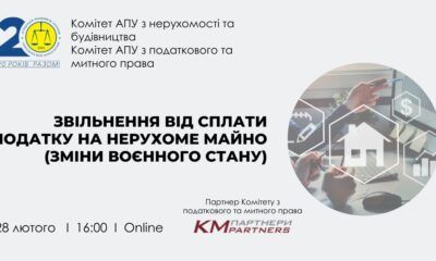 Комітет Асоціації правників України з нерухомості та будівництва та Комітет АПУ з податкового та митного права запрошують до участі в онлайн-обговоренні теми звільнення від сплати податку...
