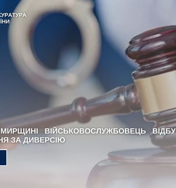За публічного обвинувачення прокурорів Житомирської спеціалізованої прокуратури у сфері оборони Центрального регіону військовослужбовця визнано винуватим у вчиненні диверсії (ч. 2...