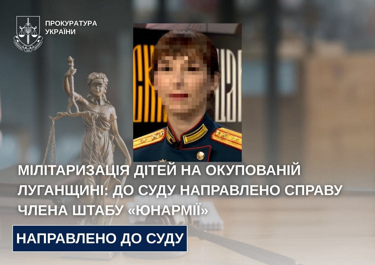 Прокурори Луганської обласної прокуратури направили до суду обвинувальний акт стосовно «члена головного штабу «Юнармії». Її дії кваліфіковано як вчинення воєнного злочину за попередньою змовою групою осіб (ч. 2 ст. 28, ч. 1 ст. 438 КК України).