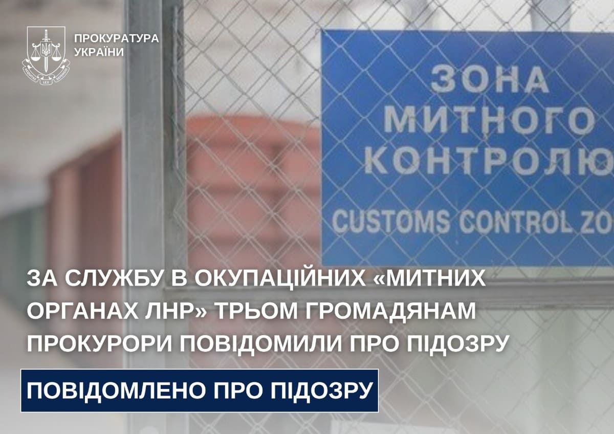 За службу в окупаційних «митних органах лнр» трьом громадянам прокурори повідомили про підозру