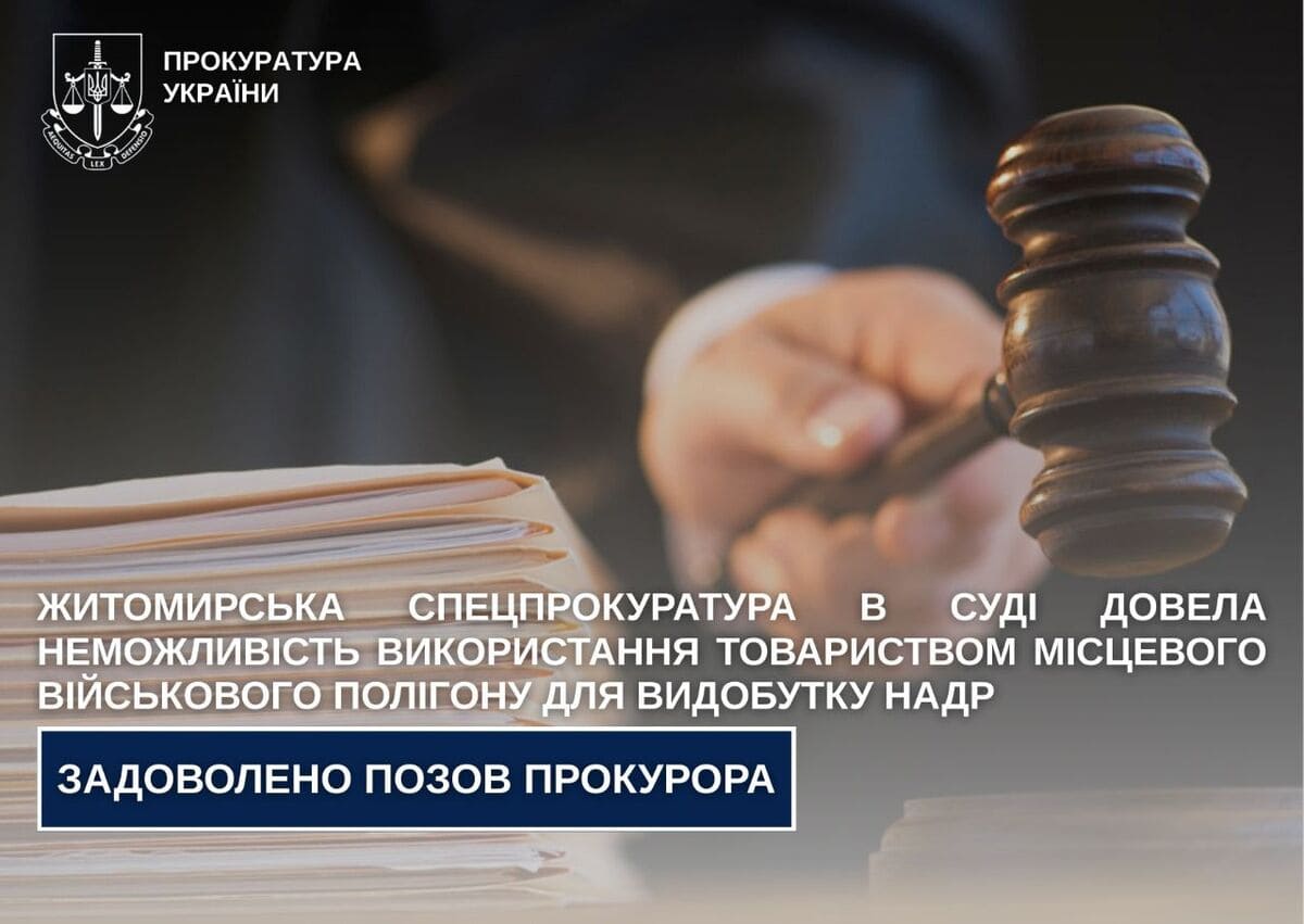 Житомирська спецпрокуратура в суді довела неможливість використання товариством місцевого військового полігону для видобутку надр